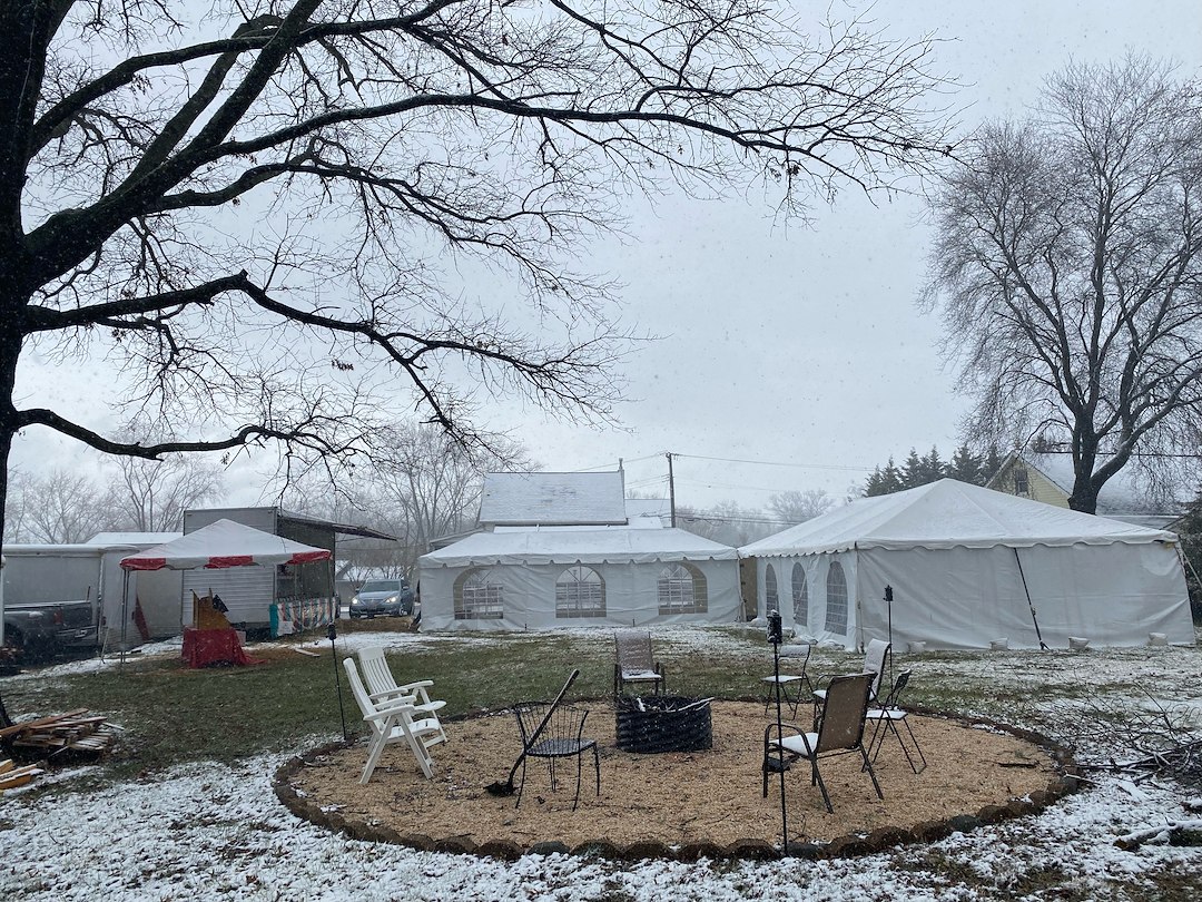 🎪 Our client planned a carnival-themed birthday party in their backyard and added a last minute tent to their order to cover their guests from the snow. With our commercial tent heaters, side walls, and lights added to the tent, this party was still able to go on despite the forecast!