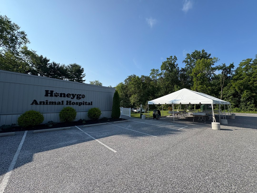 🐕 This tent was a huge success over at Honeygo Animal Hospital last week! Though clear skies were expected, the sun was blaring on the hot blacktop. All guests were able to stay cool in the shade under one of our frame tents set up with large industrial fans!
